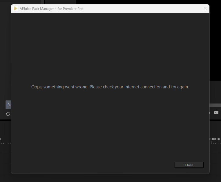 Hello i just buy all bundle and want use in Premier pro but it tell me my network error but my network is normal i don’t know how to fix i try to report but it can’t because network error